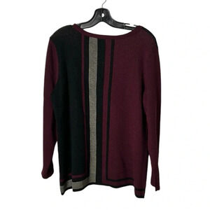 Vintage Two pieces sweater skirt set by Nina Leonard. Burgundy, block core,