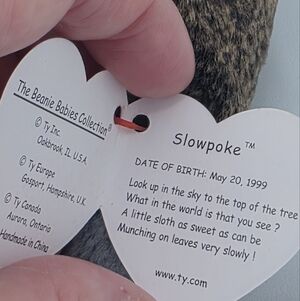 Vintage Ty Beanie Baby Slowpoke The Sloth Plush Stuffed Animal - in excellent condition with tags.