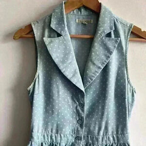 Vintage UO Lucca Couture Retro Blue Polka Dot Cottagecore Midi Dress Small