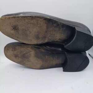 Vintage handmade, these men's brown leather derby dress shoes are a stylish addition to any wardrobe. The round toe shape and lace-up closure add a touch of sophistication, while accents like fringe and embroidery provide a unique and eye-catching look. Made with high-quality leather and featuring a comfortable insole, these shoes are perfect for any season and occasion. Whether it's a wedding, a night out, or a special event, these shoes will elevate your outfit with their classic design and attention to detail.