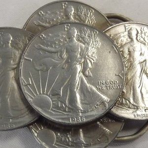 This hard to come by belt buckle features 5 USA Liberty One Dollar coins.