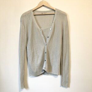 Vintage USA Made Anne Klein Silvery Button Down Cardigan + Camisole Set