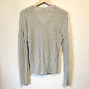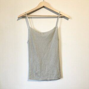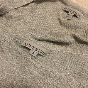 Very good preowned condition silvery grey, ribbed matching button down cardigan and camisole set by Anne Klein. Quiet luxury, shiny and glamorous. This is a very nice lightweight and sophisticated piece.