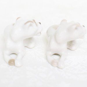 Very pretty set of 2 miniature dogs (terrier?) figurines, stamped by USSR Lomonosov factory mark. Made in the 1970s. Both are tiny but very pretty and rare especially considering their condition – like new!