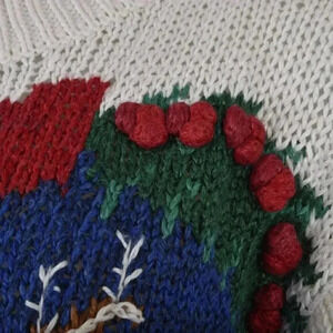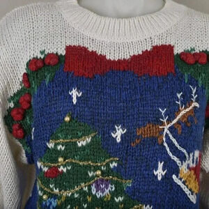 Vintage Ugly Christmas Sweater Christmas Tree Winter Scene Knit White Medium