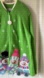 Vintage Carly St. Claire Christmas Collection zip up cardigan. Bright lime green knit with a full zip front and a fun snowflake zipper pull. Has adorable beaded and sequin applique snowmen on the front and a single snowman face on the back. Perfect for holiday parties! Please note a minor flaw: one snowman is missing an eye piece see last photo .