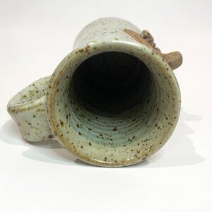 3D pottery funny face / ugly face beer stein / mug. Says BEER. Clay pottery with a speckled glaze.