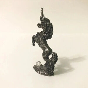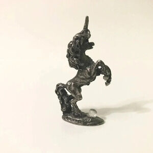 Vintage Unicorn Figurine Crystal Ball Pewter Sculpture 2.5 Inch Tall