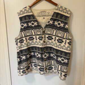 Vintage Union Garment Sweater Vest Size M Made in Hong Kong Patterned Cotton