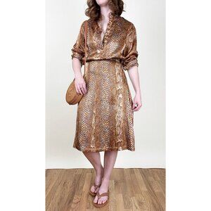 Stunning Vintage Union Made Matching Midi Skirt Blouse Shirt Set Suit Work Office Snake Print