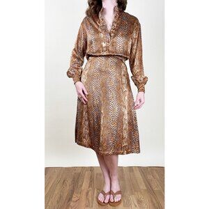 Stunning Vintage Union Made Matching Midi Skirt Blouse Shirt Set Suit Work Office Snake Print