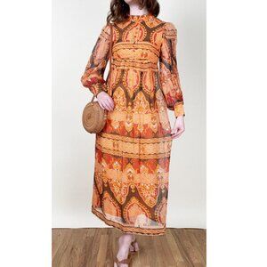 Stunning Vintage Union Made Maxi Dress Long Puffed Poof Balloon Sleeve Boho Print 60s 70s