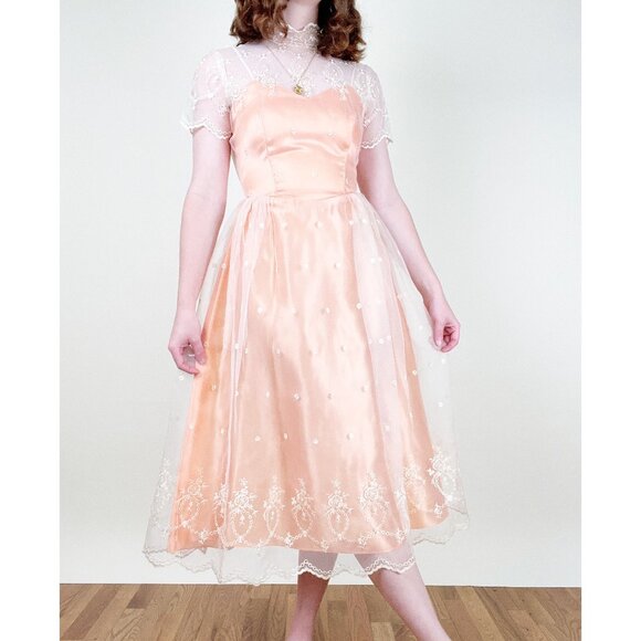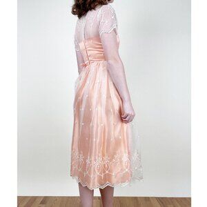 Vintage Union Made Midi Dress Lace Floral Pleated Romantic Formal Feminine Girly