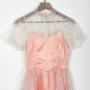 Stunning Vintage Union Made Midi Dress Lace Floral Pleated Girly