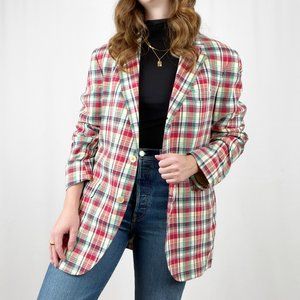 Vintage Union Made Oversized Long Plaid Check Blazer Jacket Coat Preppy Academia