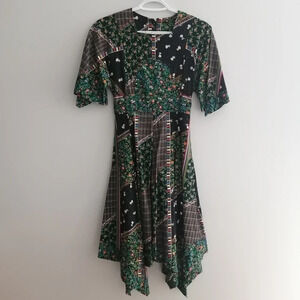 Vintage Union Made USA '70s Plaid and Floral Patchwork Midi Dress Cottage Small