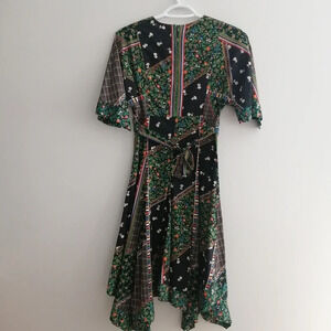 Vintage, 1970s, Cottagecore, Gunne Sax Style, Festival, Bohemian, Midi, Prairie, Country, Classic, Union Tag, patchwork, mixed media, handkerchief hem, floral