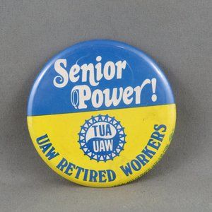 Vintage Union Pin - Senior Power UAW Retired Workers - Celluloid PIn