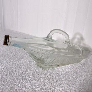 Vintage Unique Clear Glass Ship Decanter Bottle W Lid