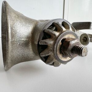 Very old, Classic, sturdy, and built to last! This Universal No. 1 hand-crank meat grinder is perfect for grinding meats, nuts, or making homemade sausage. Cast iron with a smooth wooden handle and a secure table clamp. A great find for vintage lovers and home cooks