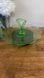 Uranium glass collectible that glows under UV, featuring floral etching and a unique handled design. Perfect for display or entertaining.