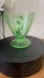 Glows under UV light, authentic uranium glass, footed design with twin handles, Depression-era collectible.