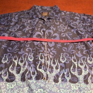 Vintage Urban Rags Blue Flame Button-Down Shirt Custom Tailored Size Large