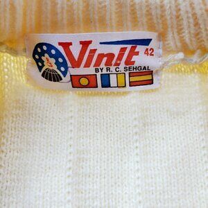 Vintage Vinit V Neck Abstract Retro Coastal Pullover Knit Cream Sweaters. Medium