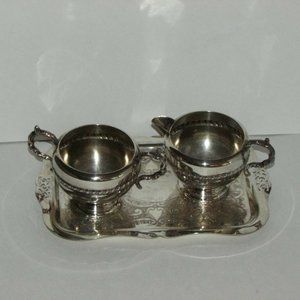 Vintage VIKING Silverplate Creamer Sugar Bowl & Tray Set