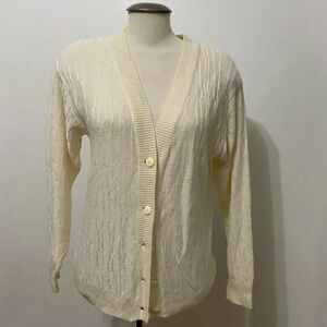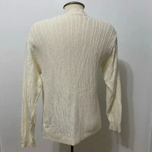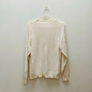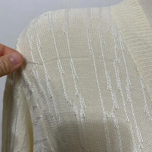 Feels like acrylic or similar blend. Super cute oversized over a tank for those Y2K vibes. EUC. Only flaw slight pull on the right side below the shoulder. Barely visible due to the pattern