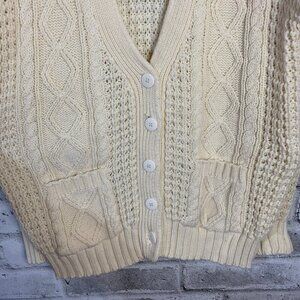 Vintage V-Neck Button Front Chunky Knit Fisherman Cardigan Sweater