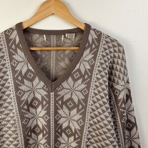 Vintage V-Neck Grandpa Sweater - Lightweight - Size L