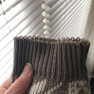 Vintage V-neck Grandpa Sweater in lightweight acrylic, perfect for early Spring - rib stitching a bit frayed in places (please see photos) but also goes with the vintage look, no pilling or holes. Overall in good pre-loved shape - Size L