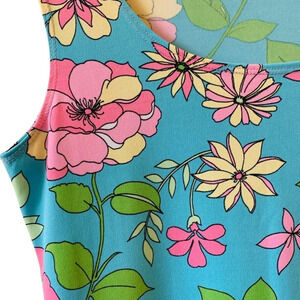 Vintage Vamp Top Womens Medium Blue Pink Floral Pastel Sleeveless Spring Summer