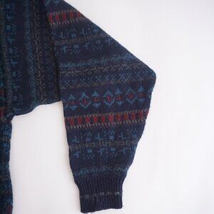 Vintage Van Heusen Navy Maroon Biggie Cosby Eclectic Knit Crewneck Sweater L