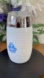 White milk glass with Cornflower Blue floral design and a chrome metal flip-top lid.
