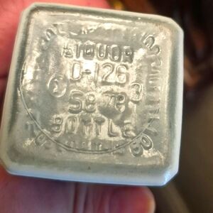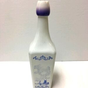 Vintage Vandermint Glass Liquor Bottle Delft Blue Windmills on White 11" Empty