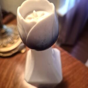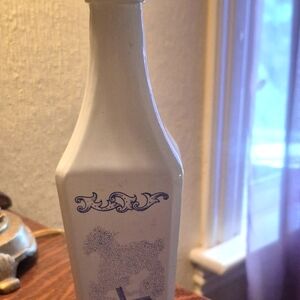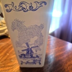 Elegant white bottle with blue windmill design. Perfect for home decor.