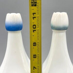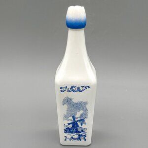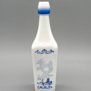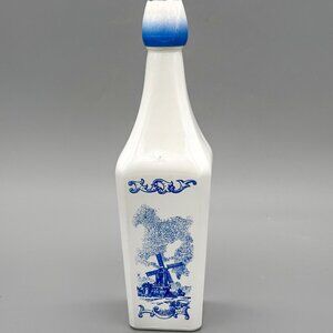 Vintage Vandermint Milk Glass Decanter Pair With Blue Windmill Design | Holland
