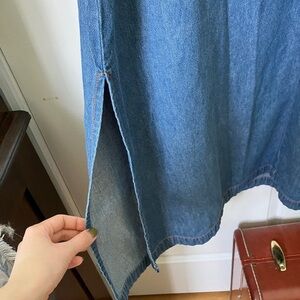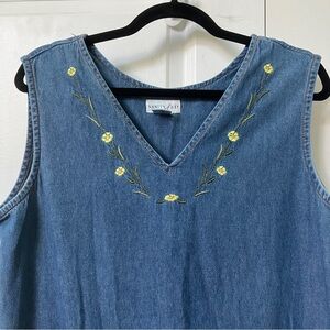 Vintage Vanity Fair Denim Floral Embroidered V-neck Maxi Dress