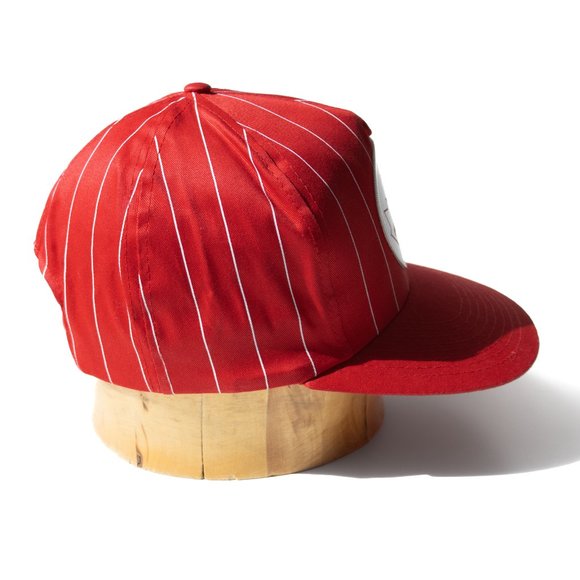 Vintage Varsity Style Red White Striped Snapback Hat Canadian Maple Lojen Patch . By Headline Headwear. Adjustable, 100% Cotton. In excellent vintage condition with no tears, damage, stains or signs of wear.