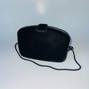Vintage Velvet Purse Clutch Bag Rhinestone Bling Closure Crossbody Strap Black