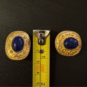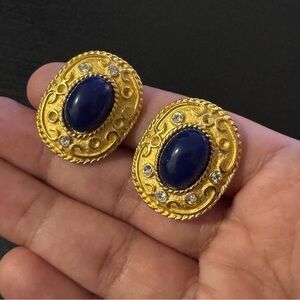 Vintage Vendome Clip On Stud Earrings Navy Blue Cabochon (Missing Rhinestones)