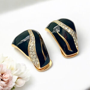 #VintageEarrings #TimelessStyle #BlackEnamel #GoldTone #RhinestoneBeauty