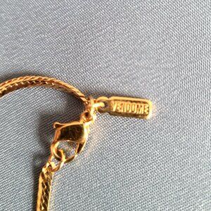 Beautiful vintage Vendome gold tone necklace/choker with purple and clear rhinestones. 7 1/4'' top to bottom. Signed Vendome. Great condition.