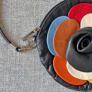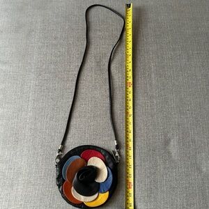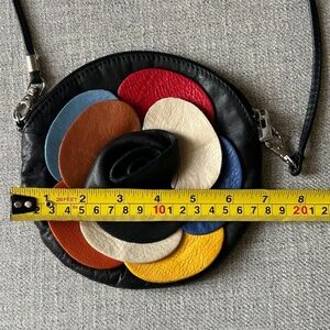 Beautiful colourful leather bag, long detachable shoulder strap.