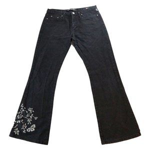Vintage Versace Black Floral Embroidered Jeans