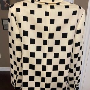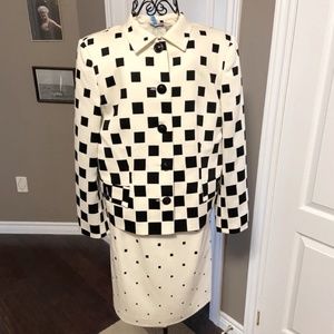 Stunning and unique box pattern winter white and black Versace Classic V2 suit in Euro size 44. Skirt and jacket in beautiful box pattern. So rare and incredible! Measurements in pictures. Good used condition. One small flaw on the collar as shown in pictures.
