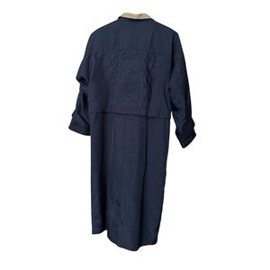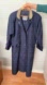 DESCRIPTION: Make a statement in this awesome vintage trench! Parachute style material. Front flaps. Waist can be cinched from inside. Back flap. Oversized fit. Padded shoulders. Contrasting collar. Blue. Snap closure. Lined