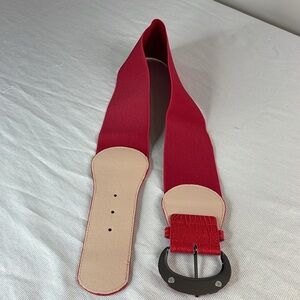 Women’s red Vintage 80’s Vibe Wide Stretchy Snake Skin Faux Leather Belt with Pewter Look buckle.